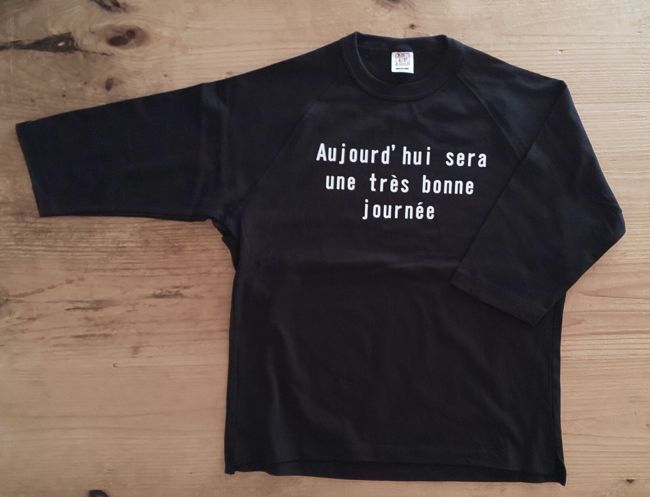 「今日はとても良い一日になる」という意味のフランス語をプリントしたTシャツです。