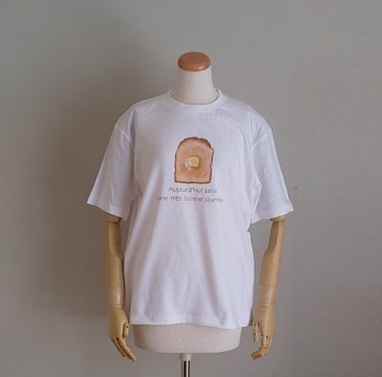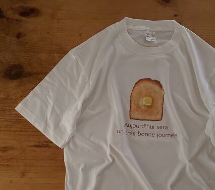 *とっても美味しそうなバタートーストのイラストがプリントされたユニークなTシャツです。